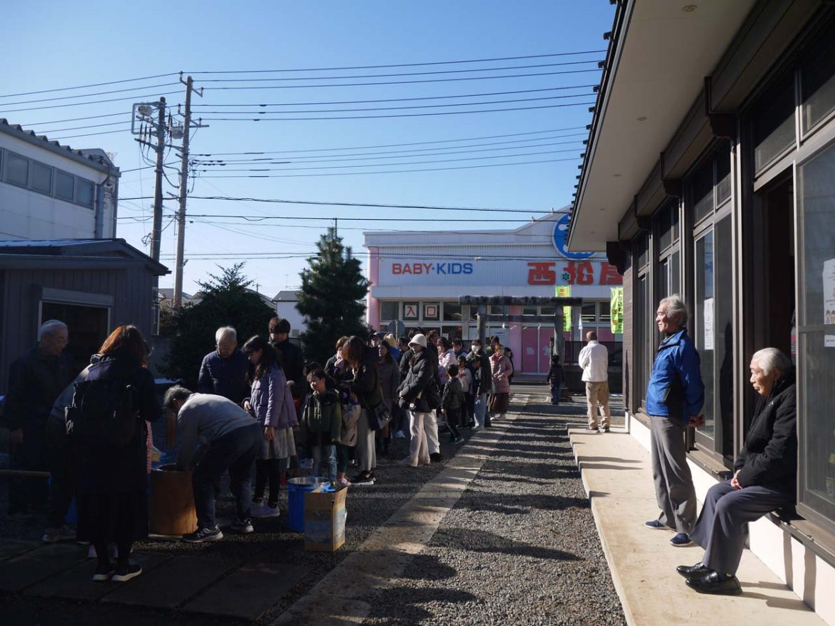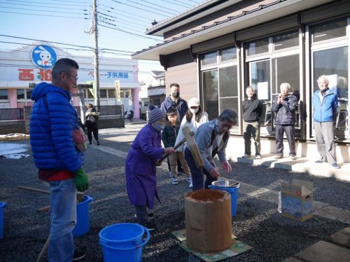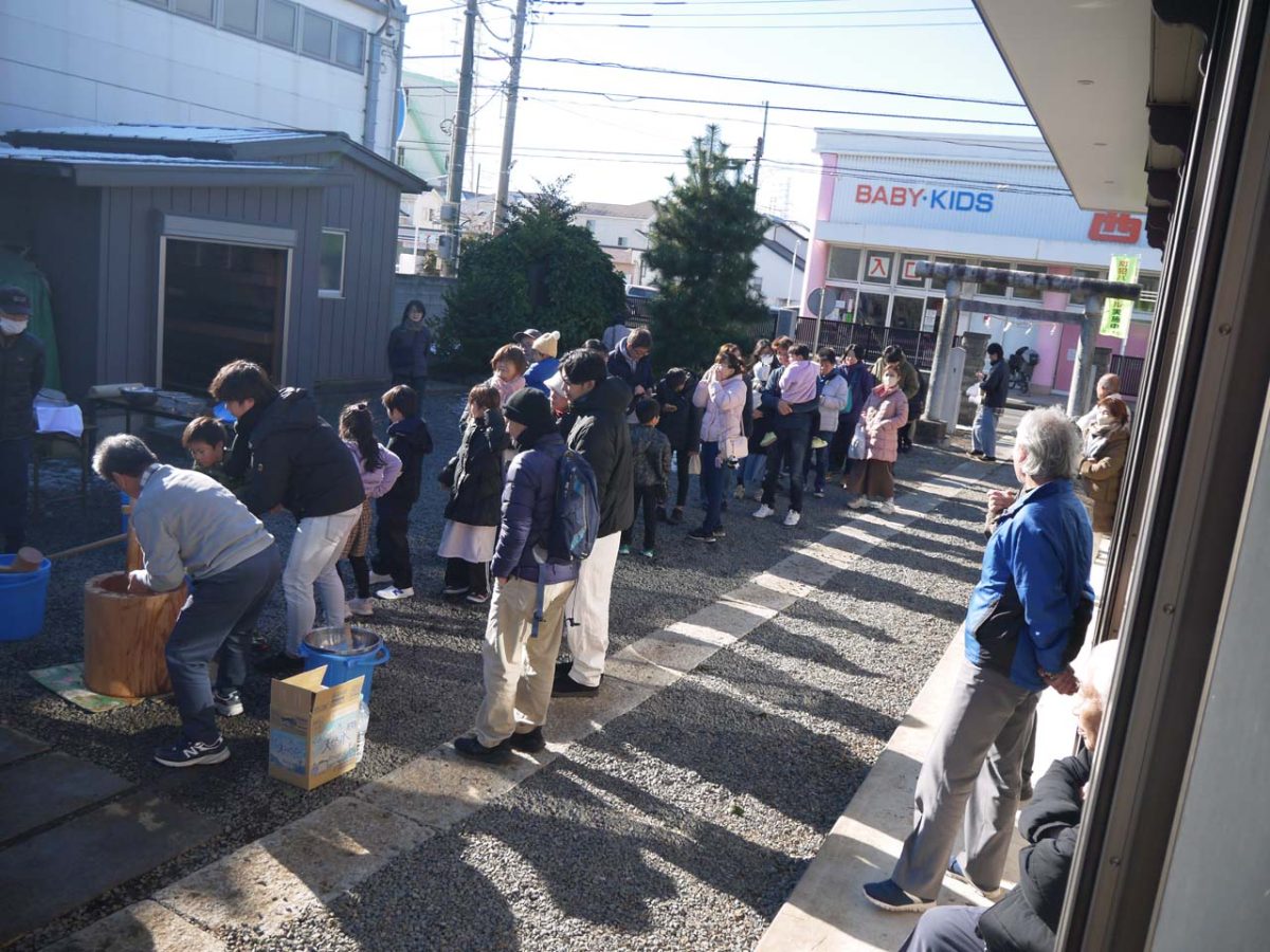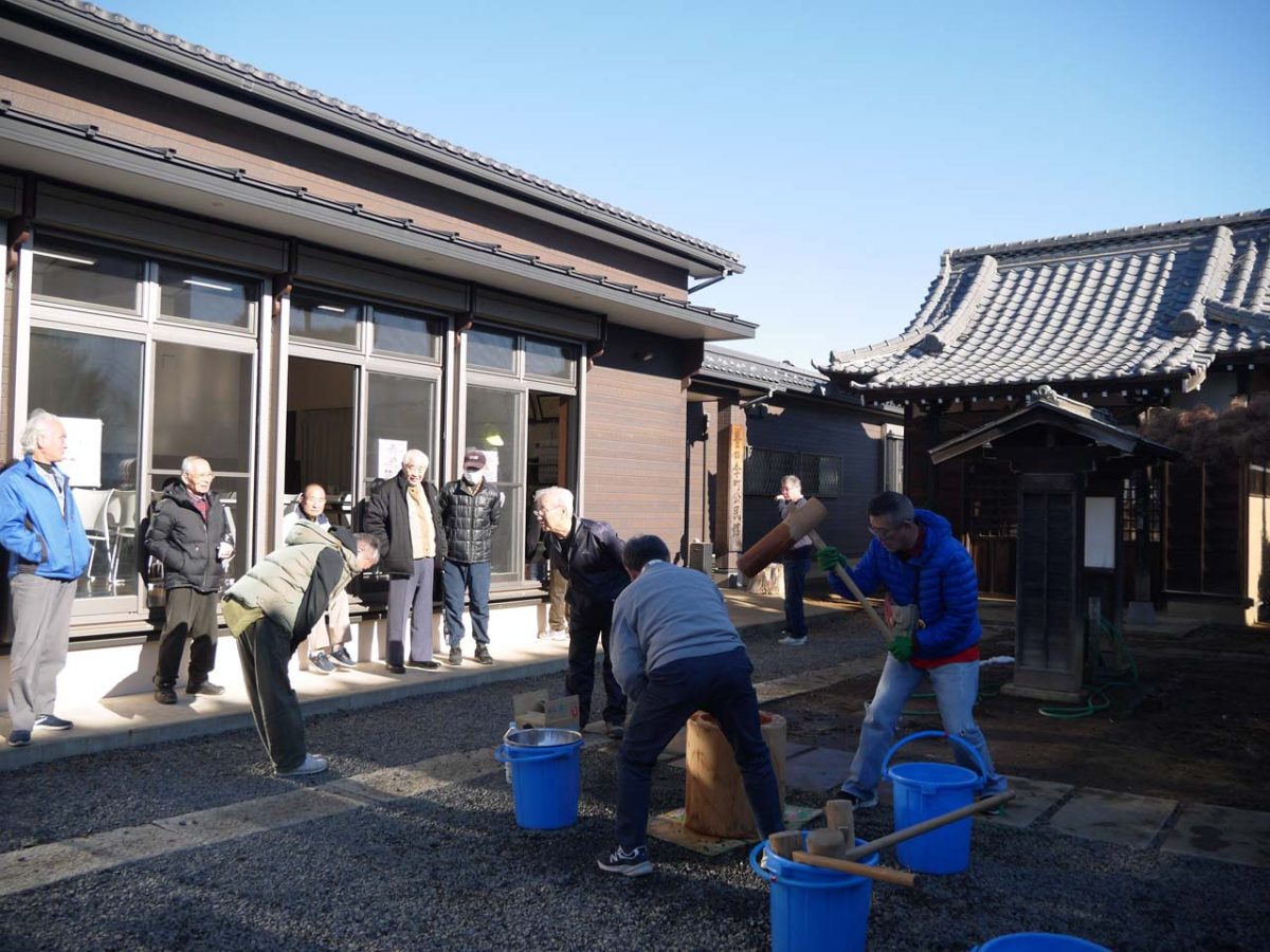 豊四季町会の恒例行事となった「新春餅つき大会」が、1月4日(日)公民館前の広場(一本松稲荷神社境内)で盛大に開催されました。好天にも恵まれ、朝10時前には一番臼が炊き上がり、餅つき開始です。