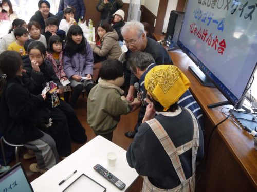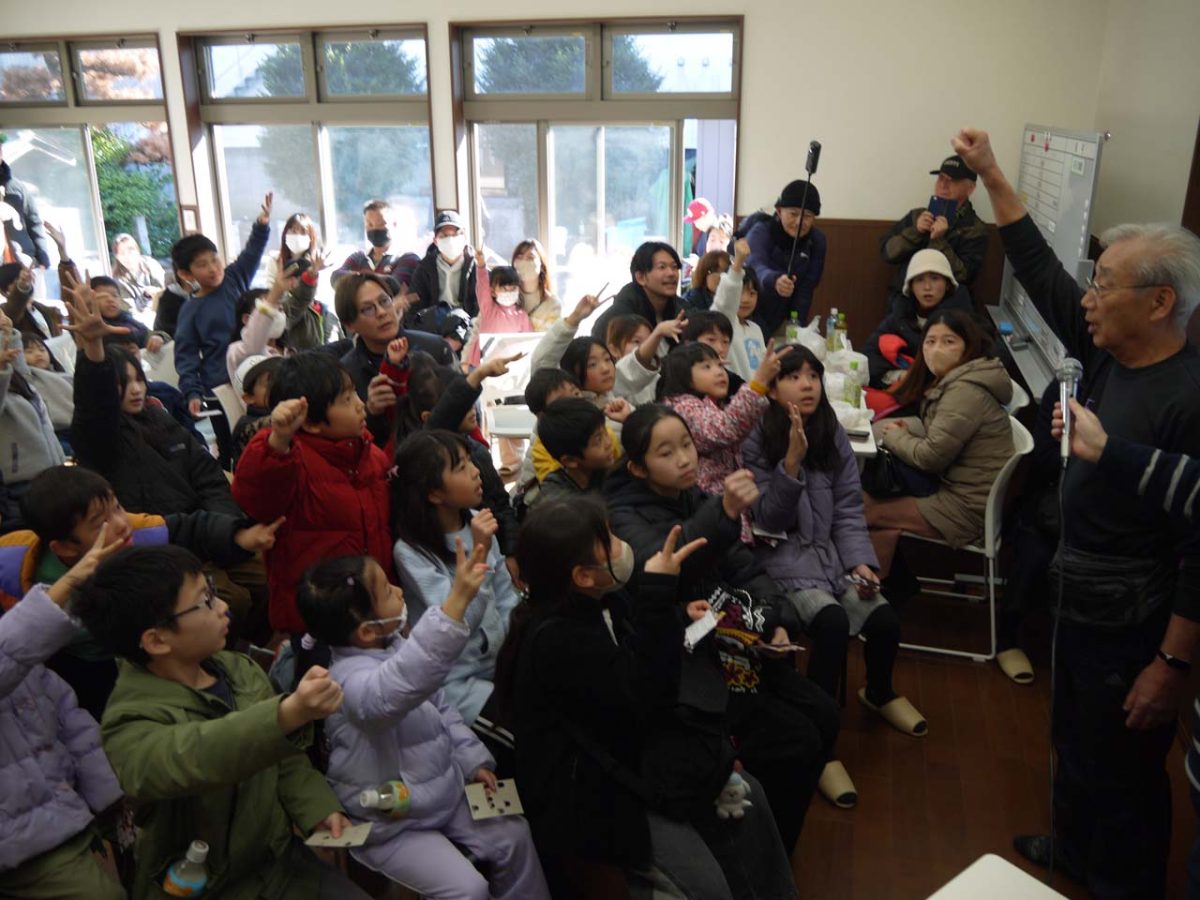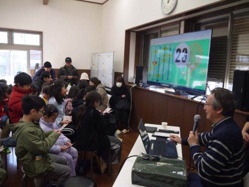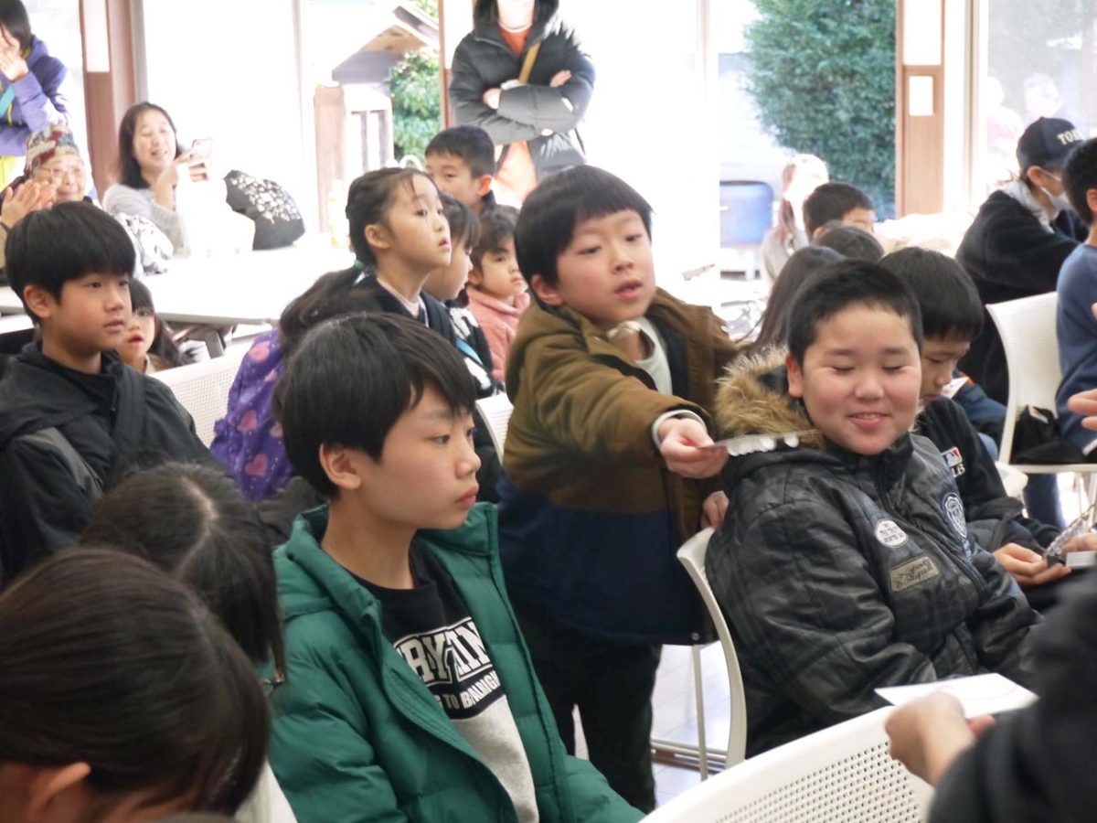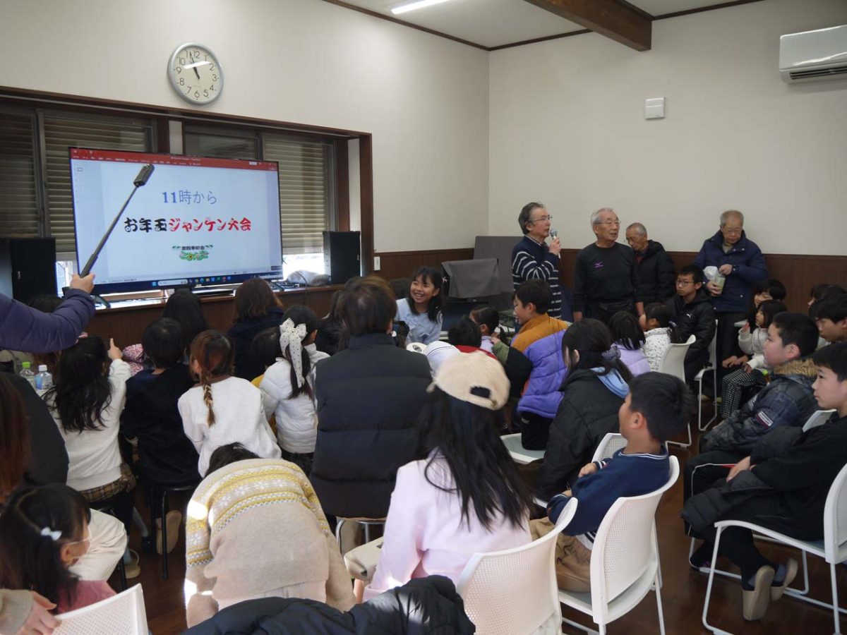 更に今年は、「お年玉争奪ジャンケン大会」も行われました。約70人の児童が参加し、〇×クイズやビンゴゲームにも緒戦、最後はジャンケンポン。それぞれに賞品、お年玉をゲット!全員に参加賞もあり、集会室にも歓声が上がりました。