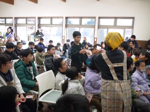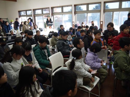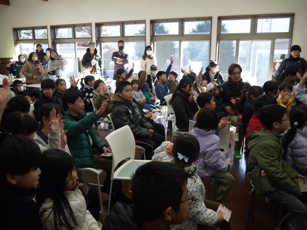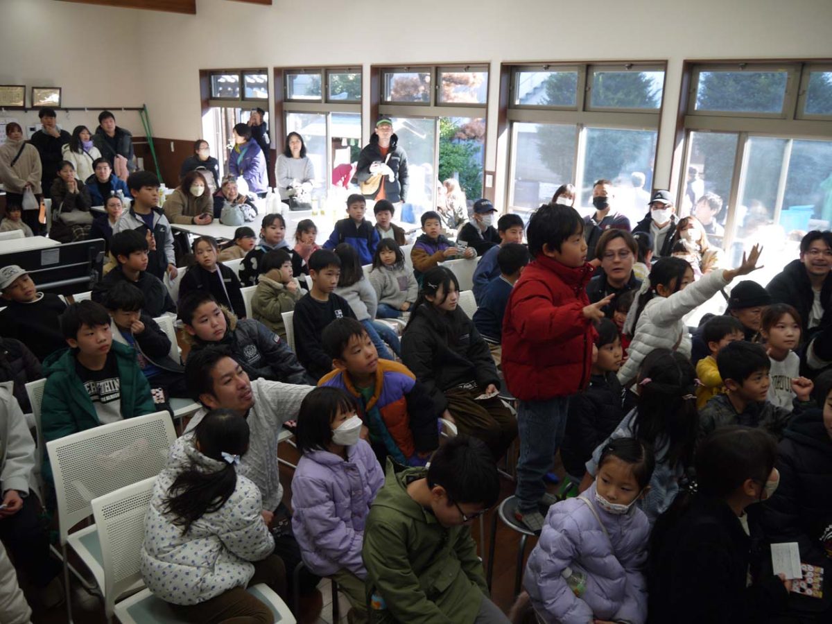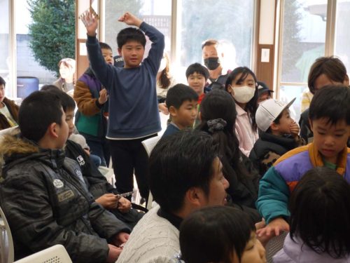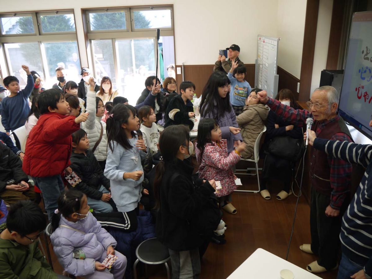 更に今年は、「お年玉争奪ジャンケン大会」も行われました。約70人の児童が参加し、〇×クイズやビンゴゲームにも緒戦、最後はジャンケンポン。それぞれに賞品、お年玉をゲット!全員に参加賞もあり、集会室にも歓声が上がりました。