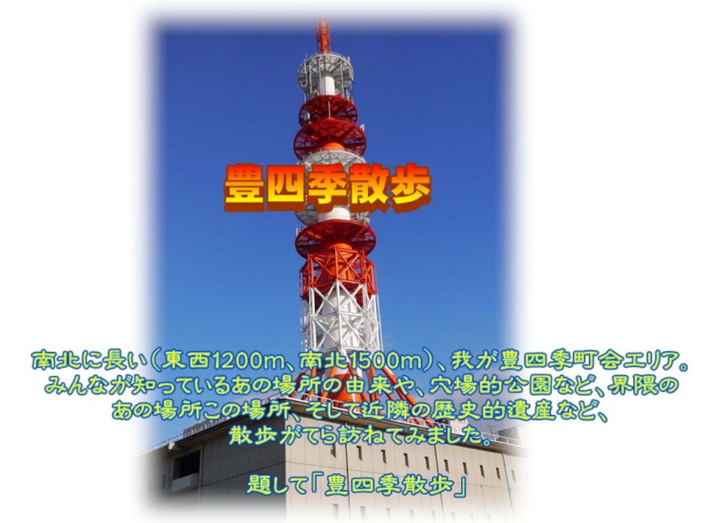 こうした鉄塔(通信情報インフラ)は全国に張り巡らされており、NTT東管内の千葉県だけでも50を超える(19年2月時点)。柏市にも近郊を含め6か所あり、「豊四季ビル」は東西南北、約2~2.5kmのエリアをカバーしている。(東西:あけぼの町~おおたかの森、南北:南柏~十余二)意外なことに鉄塔自体は電波を発信していないとのこと。又、鉄塔の高さ大きさは開示されていないが、推定75mを超える(建屋を含む)。近づくとその存在感に圧倒される。澄み切った青空が広がるこの季節、散歩がてら豊四季町会のシンボリックな鉄塔を仰ぎに出かけませんか。